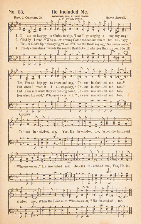| Refrain First Line: | Jesus included me, yes, He included me |