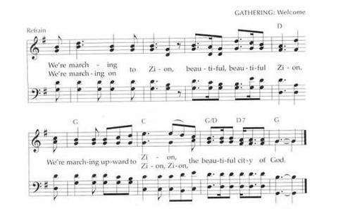 | Refrain First Line: | We're marching to Zion |
