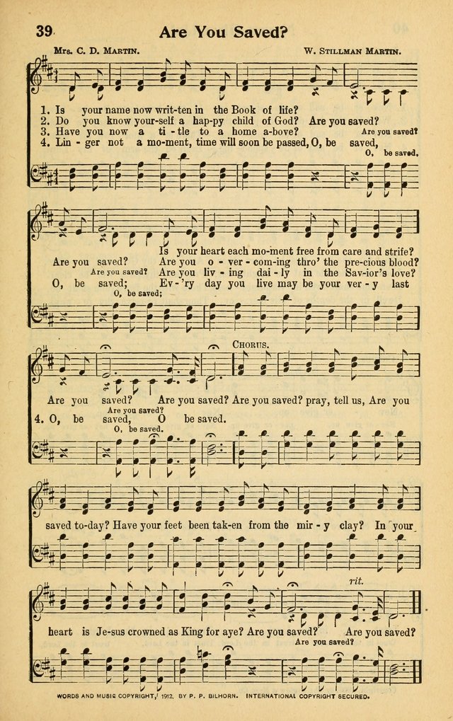 | Refrain First Line: | Are you saved? pray, tell us |