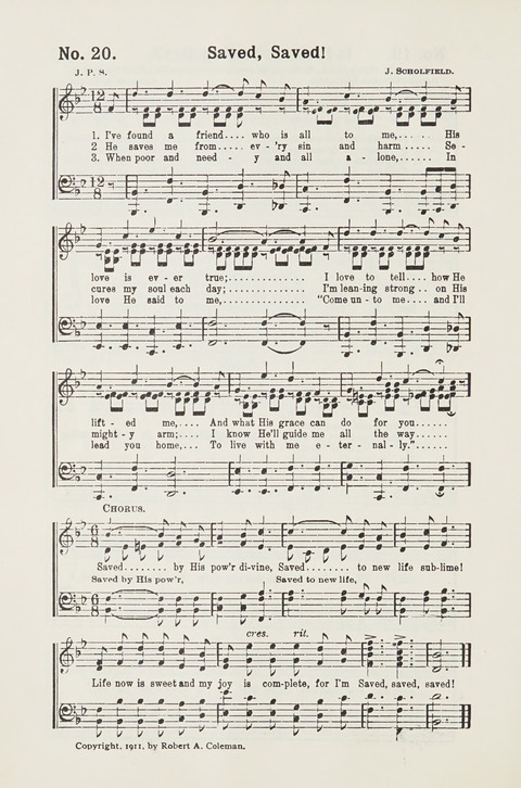 | Refrain First Line: | Saved by His pow'r divine |