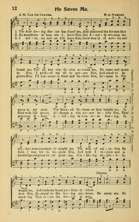 Author: Judson Wheeler Van DeVenter Hymnal: The Cyber Hymnal #11434 First Line: The dear loving Savior hath found me Refrain First Line: He saves me, He saves me Lyrics: 1 The dear loving Savior hath found me,