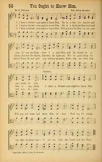 Author: H. O. Devah Hymnal: Song Praises #56 (1906) First Line: I have a friend--you ought to know Him Languages: English Tune Title: [I have a friend--you ought to know Him]