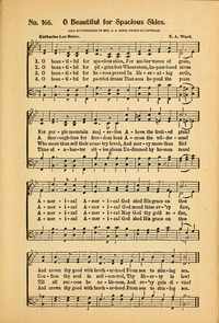 Author: Katherine Lee BatesHymnal: Union Hymnal, Songs and Prayers for Jewish Worship. 3rd ed. Revised and enlarged. #262 (1948)Topics: The NationLanguages: EnglishTune Title: [O beautiful for spacious skies]
