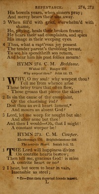 Hymnal: A New Selection of Hymns; designed for the use of conference meetings, private circles, and congregations, as a supplement to Dr. Watts' Psalms and Hymns #272 (1812)Languages: English
