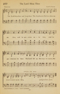 Hymnal: The New Church Hymnal #402 (1926)First Line: The Lord bless thee and keep theeLanguages: EnglishTune Title: [The Lord bless thee and keep thee]