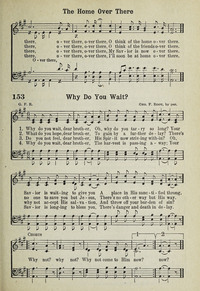 Author: G. F. R.Hymnal: Songs of the Tabernacle #143 (1916)First Line: Why do you wait, dear brother?Refrain First Line: Why not? why not?Languages: EnglishTune Title: [Why do you wait, dear brother?]