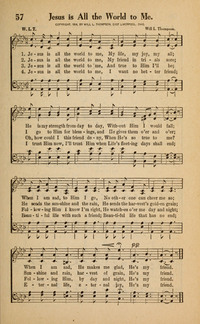 Author: W. L. T. Hymnal: Great Tabernacle Hymns #57 (1916) Languages: English Tune Title: [Jesus is all the world to me]