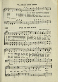 Author: G. F. R.Hymnal: Songs of Faith #235 (1933)First Line: Why do you wait, dear brotherRefrain First Line: Why not? Why not?Languages: EnglishTune Title: [Why do you wait, dear brother]