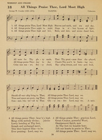 Author: George William Conder, 1821-74 Hymnal: The Methodist Hymn-Book with Tunes #29 (1933) Meter: 7.7.7.7.7.7 Topics: Adoration and Worship Languages: English Tune Title: TE LAUDANT OMNIA