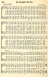 Author: H. L. G.; Rev. H. J. Zelley Hymnal: The Broadman Hymnal #50 (1940) First Line: My heart was distressed 'neath Jehovah's dread frown Refrain First Line: He bro't me out of the miry clay Languages: English Tune Title: [My heart was distressed 'neath Jehovah's dread frown]
