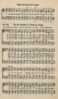 Author: Louisa M. R. SteadHymnal: Glorious Freedom #37 (1951)First Line: Tis so sweet to trust in Jesus, Just to take Him at His wordLanguages: EnglishTune Title: [Tis so sweet to trust in Jesus]