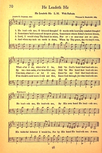 Author: J. H. GilmoreHymnal: Leading Hymns #100 (1936)First Line: He leadeth me, O blessed thoughtRefrain First Line: He leadeth me, He leadeth meLanguages: EnglishTune Title: HE LEADETH ME