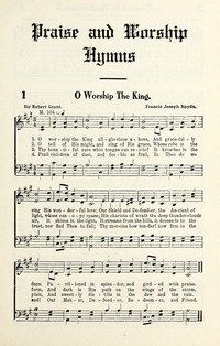 Author: Robert Grant Hymnal: Tabernacle Hymns #1 (1921) First Line: O worship the King, all glorious above Topics: Devotional Tune Title: [O worship the King, all glorious above]