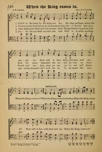 Author: J. E. LandorHymnal: The Royal Fountain No. 3 #100[110] (1882)First Line: Call'd to the feast by the King are weRefrain First Line: When the King comes in, brotherLanguages: EnglishTune Title: [Call'd to the feast by the King are we]
