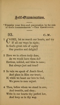 Hymnal: The Psalms of David #H42 (1789) First Line: Come let us search our ways and try Lyrics: 1 Come let us search our ways and try,