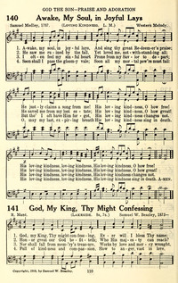 Author: Samuel MedleyHymnal: The Baptist Standard Hymnal #140 (1924)Topics: God the Son Praise and AdorationLanguages: EnglishTune Title: LOVING KINDNESS
