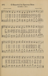 Author: Katharine Lee Bates Hymnal: The New National Baptist Hymnal (21st Century Edition) #454 (2001) First Line: O beautiful for spacious skies Lyrics: 1 O beautiful for spacious skies,