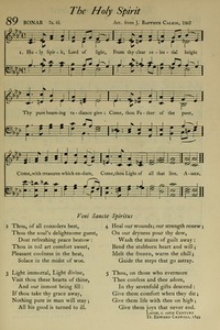 Author: Edward Caswall Hymnal: The Pilgrim Hymnal #89 (1912) First Line: Holy Spirit, Lord of Light Topics: The Holy Spirit Tune Title: BONAR
