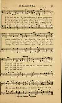 Author: J. H. GilmoreHymnal: Singing on the Way #23 (1882)First Line: He leadeth me! O blessed thoughtRefrain First Line: He leadeth me! He leadeth me!Languages: EnglishTune Title: [He leadeth me! O blessed thought]
