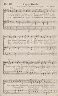 Hymnal: Fountain of Praise #114 (1892) First Line: Angry words! O let them never Refrain First Line: Love one another thus saith the Saviour Languages: English Tune Title: [Angry words! O let them never]