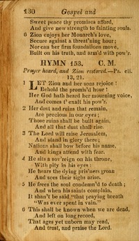 Hymnal: Doctor Watts's Imitation of the Psalms of David, corrected and enlarged, to which is added a collection of hymns; the whole applied to the state of the Christian Church in general (2nd ed.) #188 (1786) First Line: Let Zion, and her sons rejoice Lyrics: 1 Let Zion and her sons rejoice,