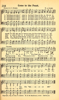 Author: Charlotte G. Homer Hymnal: Crowning Day No. 4 #163 (1900) First Line: "All things are ready," come to the feast Refrain First Line: Hear the invitation Languages: English Tune Title: ["All things are ready," come to the feast]