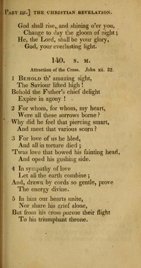 Hymnal: A Selection of Hymns and Psalms for Social and Private Worship (6th ed.) #140 (1827) Meter: 6.6.8.6 Topics: Attraction of the Cross; Jesus Christ Moral influence of his sufferings Scripture: John 12:32 Languages: English