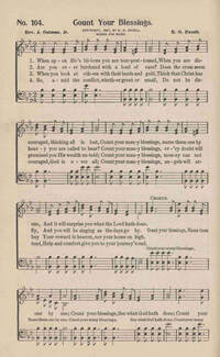 Author: Rev. J. Oatman, Jr.Hymnal: Twentieth (20th) Century Songs Part One #97 (1900)First Line: When upon life's billows you are tempest tossedRefrain First Line: Count your blessings, name them one by oneLanguages: EnglishTune Title: [When upon life's billows you are tempest tossed]