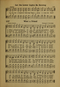 Author: Joseph ScrivenHymnal: Hymns of Praise #237 (1922)First Line: What a Friend we have in JesusLanguages: EnglishTune Title: [What a Friend we have in Jesus]