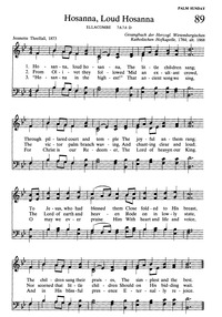 Author: Jeannette Threlfall Hymnal: The Hymnal of The Evangelical United Brethren Church #107 (1957) Meter: 7.6.7.6 D Scripture: Mark 11:1-11 Lyrics: 1 Hosanna, loud hosanna The little children sang; Through pillared court and temple The joyful anthem rang; To Jesus, who had blessed them Close folded to His breast, The children sang their praises, The simplest and the best. 2 From Olivet they followed 'Mid an exultant crowd, The victor palm branch waving, And chanting clear and loud; The Lord of men and angels Rode on in lowly state, Nor scorned that little children Should on His bidding wait. 3 "Hosanna in the highest!" That ancient song we sing, For Christ is our Redeemer, The Lord of heaven our King. O may we ever praise Him With heart and life and voice, And in His blissful presence Eternally rejoice! Amen. Topics: Jesus Christ Triumphal Entry Tune Title: ELLACOMBE