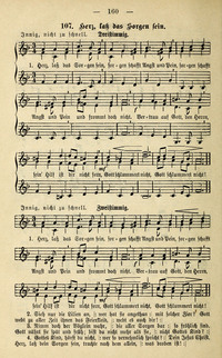 Hymnal: Lobe den Herrn! #138 (1905)First Line: Herz, laß doch das Sorgen sein!Refrain First Line: Herz, laß doch das Sorgen seinLanguages: GermanTune Title: [Herz, laß doch das Sorgen sein!]
