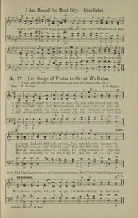 Author: J. M. HunterHymnal: Beall's Gospel Songs with supplement entitled Favorite Hymns #d128 (1907)First Line: Our songs of praise to Christ we raiseLanguages: English