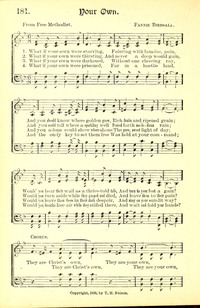 Author: Mrs. L. G. McVean Hymnal: The Cyber Hymnal #13027 First Line: What if your own were starving Refrain First Line: They are Christ’s own, they are your own Lyrics: 1 What if your own were starving,