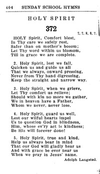 Author: Adolf Langsted Hymnal: Hymnal for Church and Home (2nd ed.) #372 (1928) Meter: 7.7.8.8.7 Lyrics: 1 Holy Spirit, Comfort blest,
