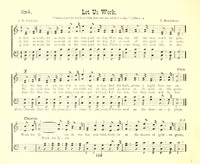 Author: J. B. CarlinHymnal: The Standard Sunday School Hymnal #115 (1888)First Line: Let us work, let us work in the vineyard todayRefrain First Line: Work for Jesus in the harvest fieldLanguages: EnglishTune Title: [Let us work, let us work in the vineyard today]