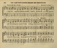 Author: Mrs. M. A. Kidder Hymnal: The Little Sower for Sabbath Schools #40 (1870) First Line: Oh! let not your hearts be troubled Refrain First Line: There is joy for the ransomed Lyrics: 1 Oh! let not your hearts be troubled,