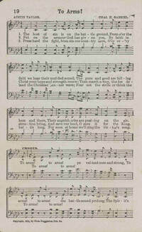 Author: Austin TaylorHymnal: New Songs of Victory #8 (1911)First Line: The host of sin is on the battle groundRefrain First Line: To arms! to arms! ye valiant men and strongLanguages: EnglishTune Title: [The host of sin is on the battle ground]