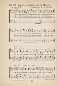 Author: H. Bonar, D.D.Hymnal: Pure Songs for Sunday-Schools #57 (1889)Refrain First Line: Home, home, sweet, sweet home!Languages: EnglishTune Title: [Beyond the smiling and the weeping]