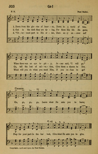 Author: Paul Rader Hymnal: The Cyber Hymnal #1923 First Line: Down from the glories of Heaven Refrain First Line: Go, go, go, go Lyrics: 1. Down from the glories of Heaven,