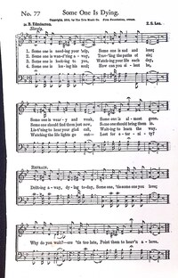 Author: B. B. Edmiaston Hymnal: The New Wonderful Songs for Work and Worship #127 (1938) First Line: Some one is needing your help Refrain First Line: Drifting away, dying to-day Lyrics: 1 Some one is needing your help,