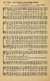 Author: Frank C. Huston Hymnal: The Cyber Hymnal #7618 First Line: The Word of God shall ever stand Lyrics: 1. The Word of God shall ever stand,