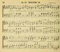 Hymnal: Songs of Glory No. 2 #100 (1881)First Line: With the heav'nly armor shining brightRefrain First Line: Marching on, marching onLanguages: EnglishTune Title: [With the heav'nly armor shining bright]