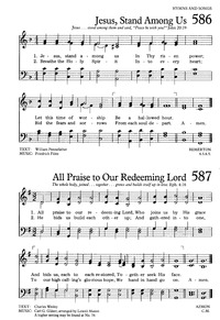 Author: Charles Wesley Hymnal: The United Methodist Hymnal #554 (1989) Meter: 8.6.8.6 Lyrics: 1 All praise to our redeeming Lord,