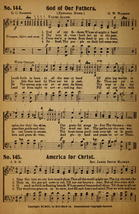 Author: J. B. M. Hymnal: New Songs of Pentecost No. 2 #145 (1917) First Line: Dear Saviour, we our love would show Refrain First Line: America, America Lyrics: 1 Dear Saviour, we our love would show,
