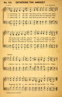 Author: C. W. R.Hymnal: The Revival Helper #106 (1893)First Line: Gathering in the harvestRefrain First Line: Gathering in the harvestLanguages: EnglishTune Title: [Gathering in the harvest]