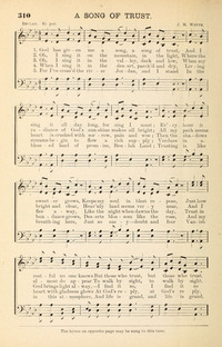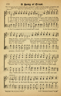 Author: Beulah Hymnal: Melodious Sonnets #31 (1885) First Line: God has given me a song, a song of trust Refrain First Line: Ye who trust in the Lord Lyrics: 1 God has given me a song, a song of trust,