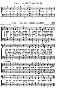 Author: Charles C. Luther Hymnal: Timeless Truths #603 Meter: 8.7.8.7 D First Line: "Must I go, and empty-handed,” Refrain First Line: “Must I go, and empty-handed?” Lyrics: 1 “Must I go, and empty-handed,”