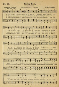Author: Josephine PollardHymnal: Augsburg Songs No. 2 #54 (1893)First Line: Out on the highways wherever we goRefrain First Line: Sowing seed, yes, sowing seedTopics: ActivityLanguages: EnglishTune Title: [Out on the highways wherever we go]