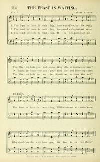 Author: F. M. D.Hymnal: Crown of Beauty #114 (1902)First Line: The feast of love is waitingRefrain First Line: The feast of love is waitingLanguages: EnglishTune Title: [The feast of love is waiting]