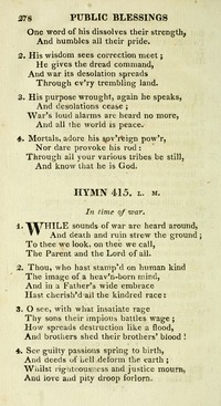 Author: John Aikin Hymnal: The Cyber Hymnal #13165 Meter: 8.8.8.8 Lyrics: 1 While sounds of war are heard around,